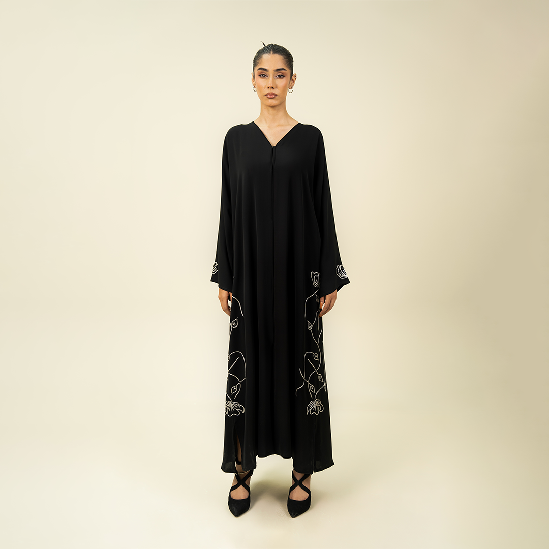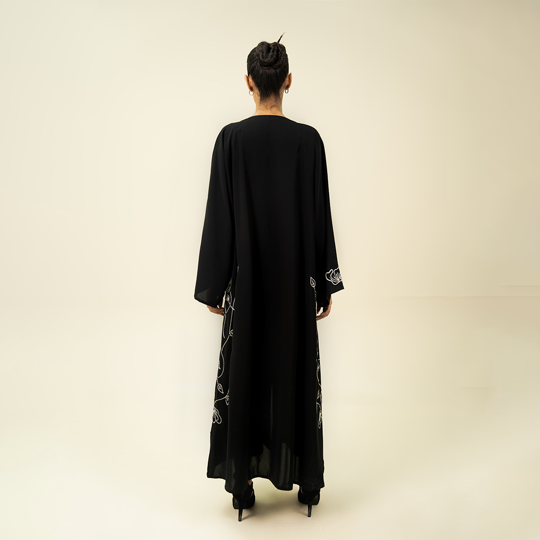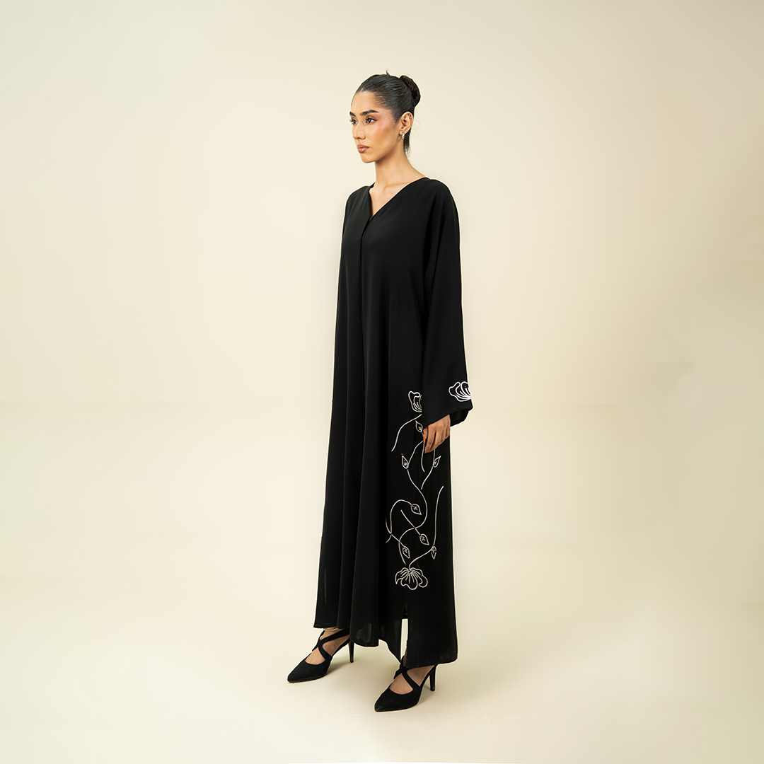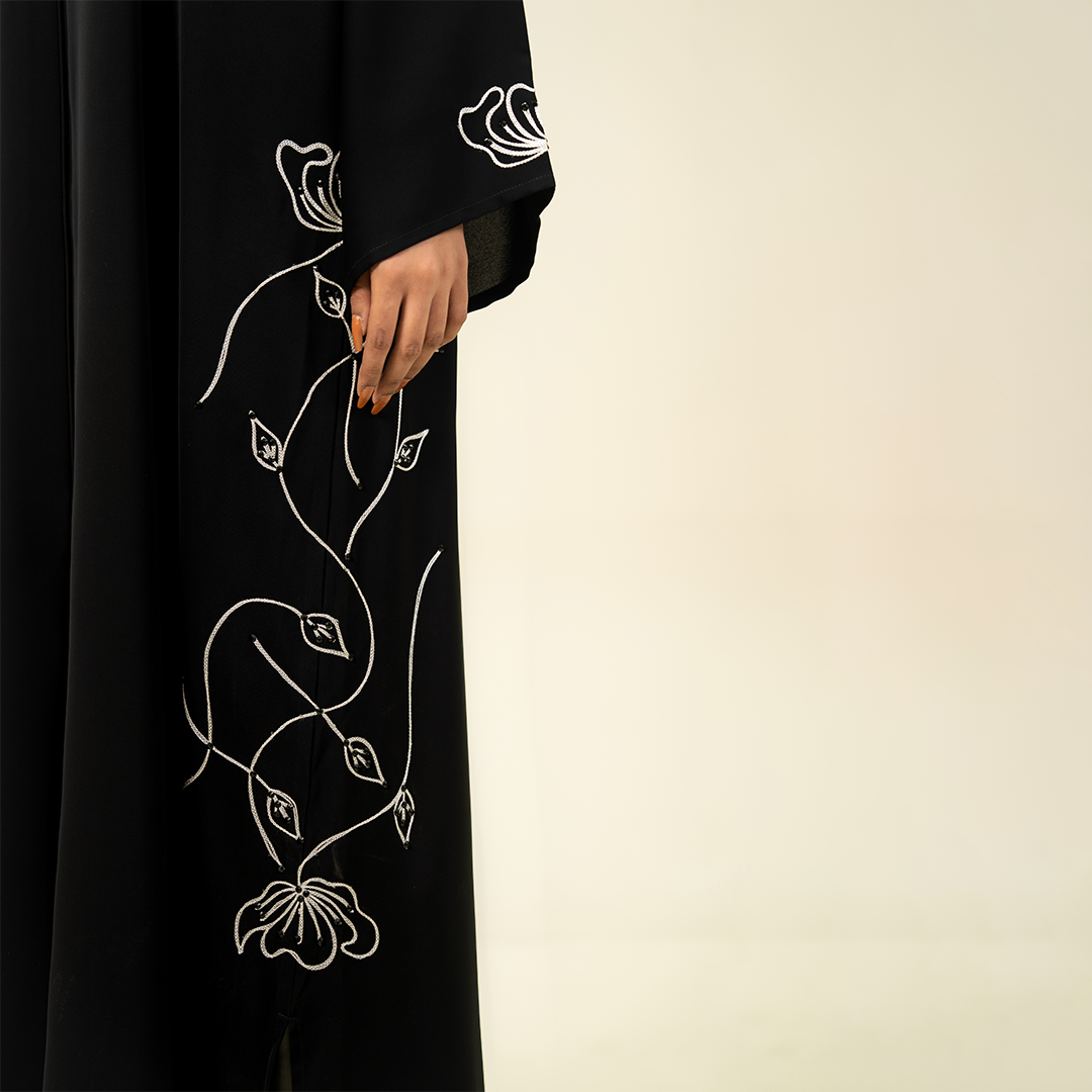 - Design: Intricate silver beaded leaf and vine motifs climbing the sides and sleeves